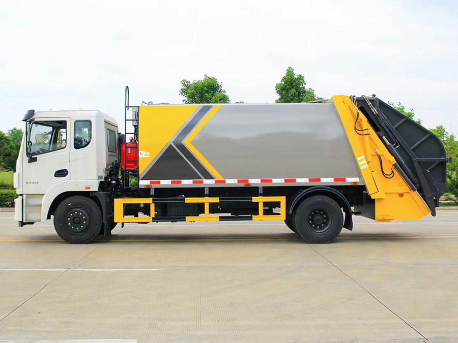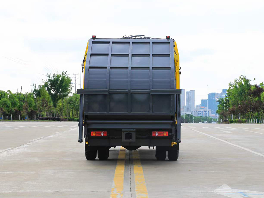 上裝配置:1,新款弧形箱體,增加箱體容積,整車更美觀,箱體為碳鋼制作,底箱及填充器采用加厚鋼板,耐腐蝕使用壽命長,一層油漆噴涂處理。2,裝載循環時間=25S;垃圾排出時間≤25S;填料提升角度≥95°,壓縮比例為1/3-1/2,一裝部分具備雙向壓縮和蠕動壓縮功能帶。3,新款結構加大填充器,手電一體操作模式,帶駕駛室操作,帶駕駛室一鍵卸料功能,3308軸距以上配遠距離遙控器,尾部裝置可以選裝垃圾翻轉斗,掛桶翻轉板或者大落地斗。4,CAN總線控制方式,光電開關加延時雙系統控制,降低故障率,方便維修。5,帶夜間照明裝置,6方)及以上車型帶雙污水箱,污水箱排水球閥和排水蓋,增加排水管,防止濺水,人性化設計。6,標配選用:威森搏樂油缸,威森搏樂多路閥,3308軸距以上配備壓實閥(背壓閥),所有車型標配單泵。5000軸距、后八輪車型標標配雙聯泵,大油量多路閥。